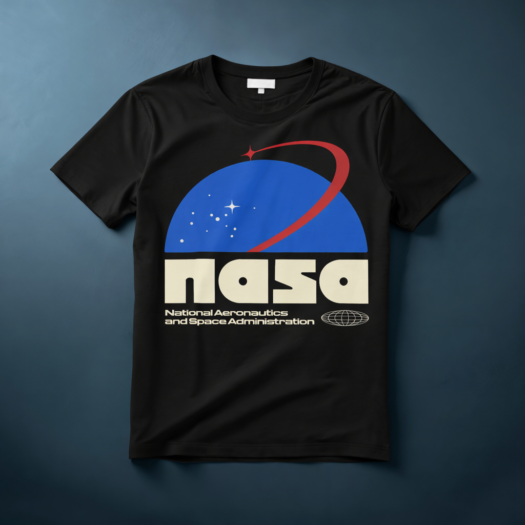 Explorá un look fuera de este mundo con esta remera negra inspirada en la icónica estética de NASA. Su diseño combina el clásico logo espacial con detalles modernos, colores vibrantes y un enfoque streetwear que la convierte en una prenda única.