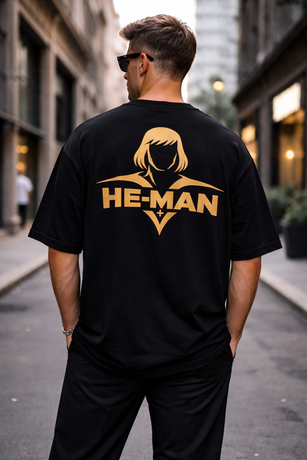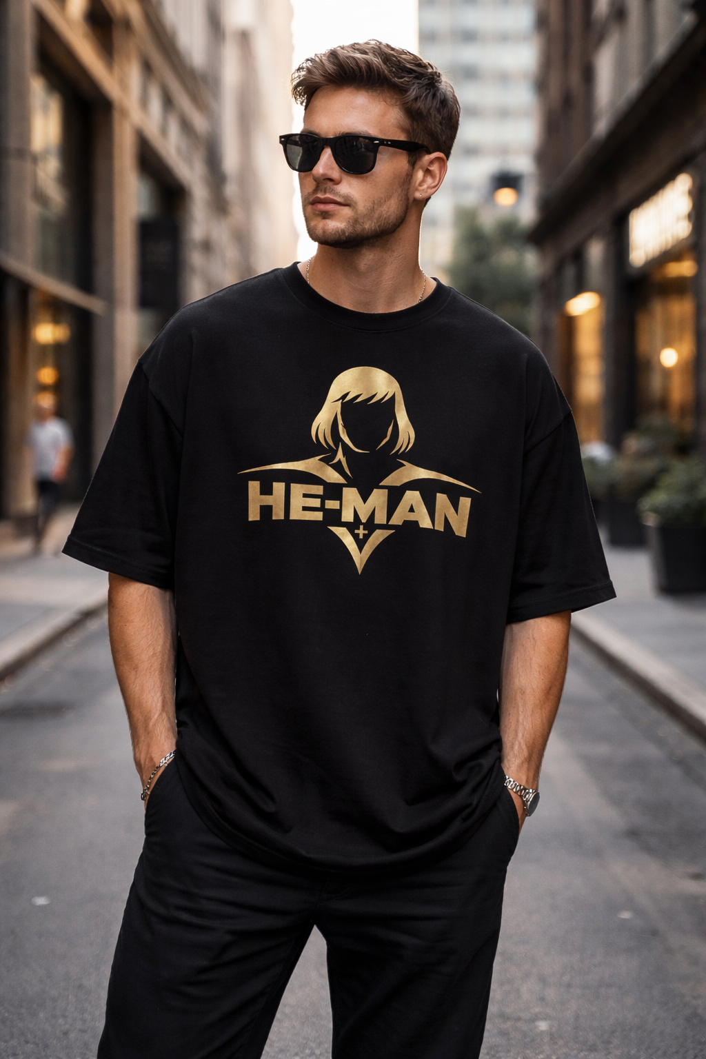 La HE-MAN Gold Edition combina diseño icónico con estética streetwear moderna. Estampa frontal en dorado de alto impacto sobre base negra, logrando un contraste elegante y fuerte que no pasa desapercibido.